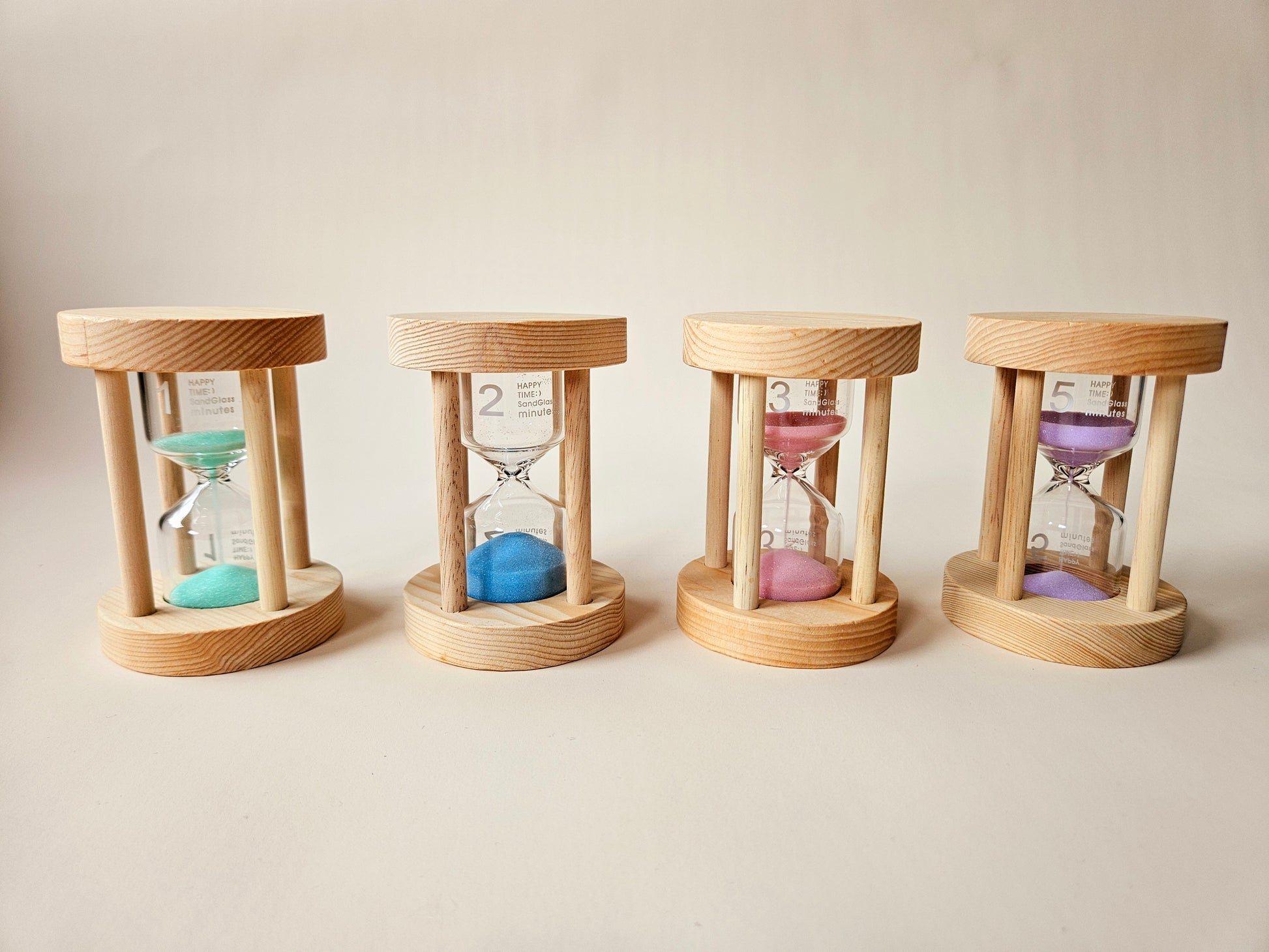 עידוד עצמאות - סט שעוני חול מעץ וזכוכית - Qtoys